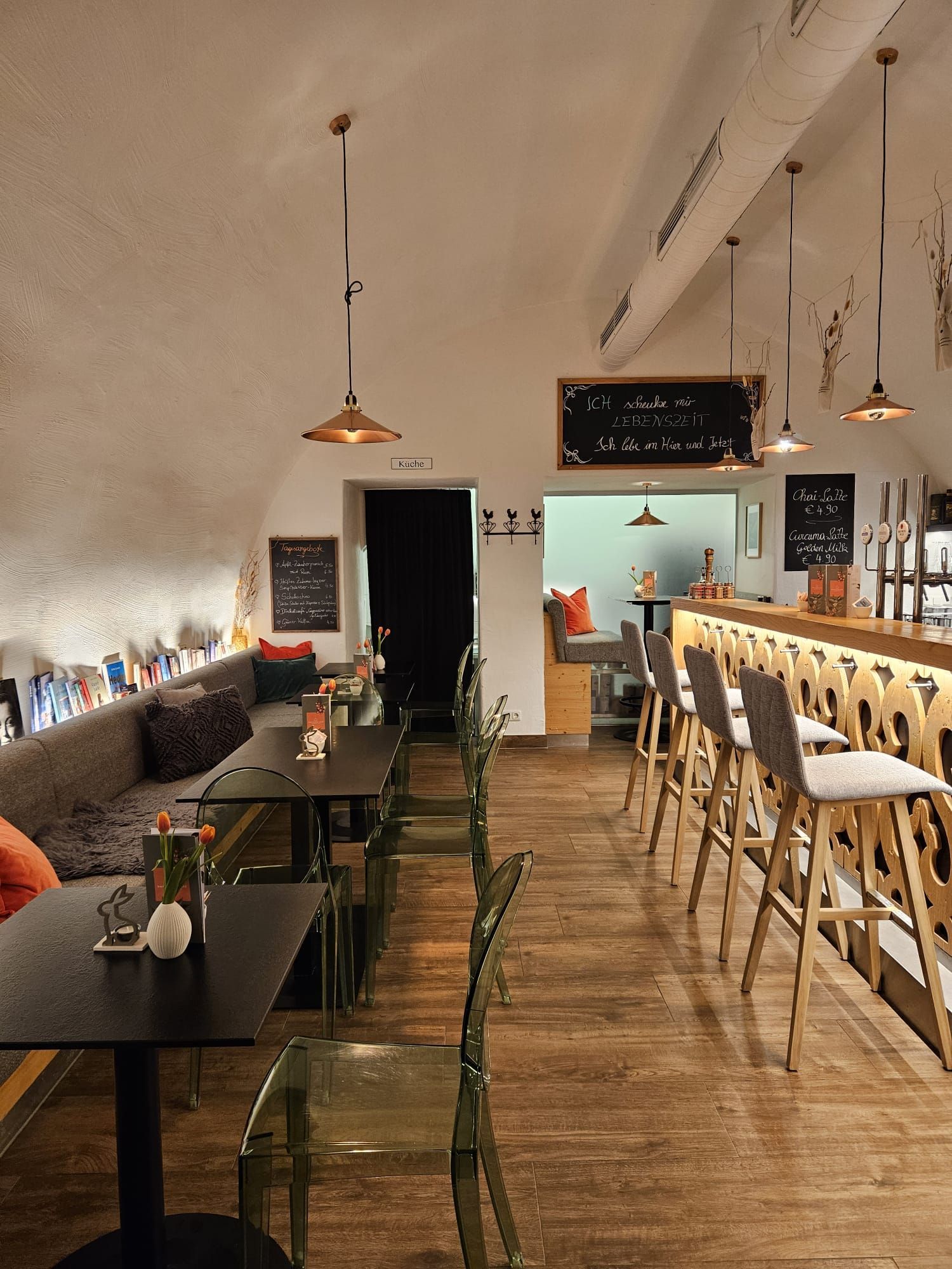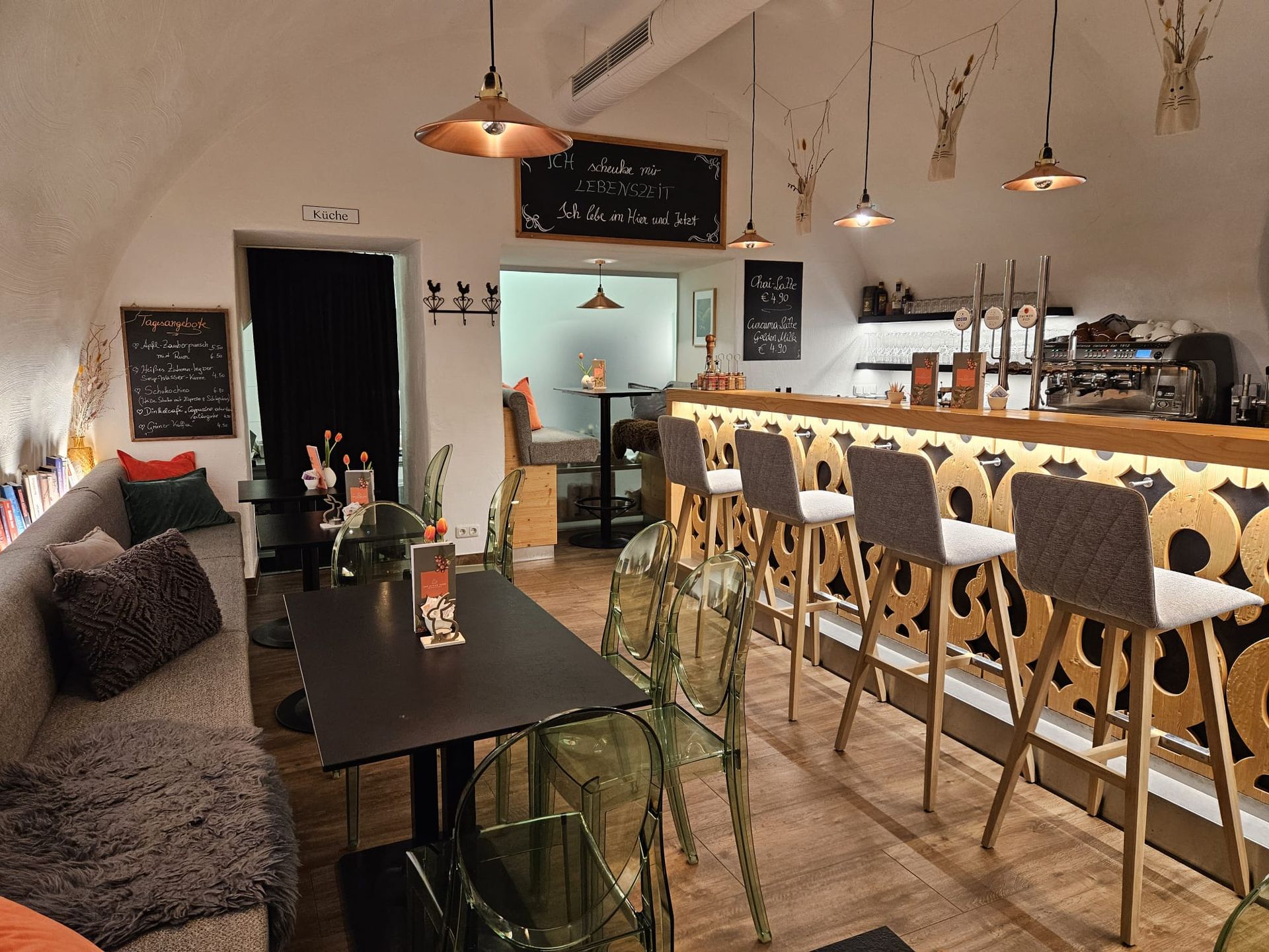 Mitten in der charmanten Altstadt von Bad Aussee am Meranplatz erwartet dich eine Oase der Modernität und Gemütlichkeit. Unsere Räumlichkeiten sind liebevoll gestaltet, um eine angenehme und ungezwungene Atmosphäre zu schaffen. Die Verbindung aus zeitgemäßem Design und entspannter Wohlfühlatmosphäre macht unser Café zu einem Ort der Begegnung für alle, die das Besondere suchen. Egal ob du dich in die lebendige Gesellschaft stürzt oder einen ruhigen Moment der Entspannung suchst – unser Café bietet den idealen Raum für unvergessliche Augenblicke. Komm vorbei und erlebe selbst, wie sich modernes Flair und herzliche Gastfreundschaft bei uns vereinen!